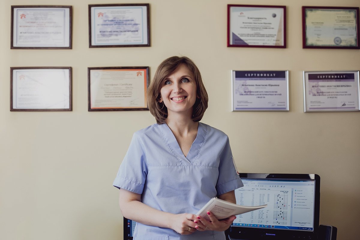 Когда вашему питомцу нужна квалифицированная помощь, сперва следует обратиться к врачу-терапевту. В любой ветеринарной клинике именно этот человек ведет общую практику и определяет курс лечения. Анастасия Валериевна Гордионок занимается приемом животных и при необходимости выдает направление к узким специалистам, проводит вакцинацию и плановый профилактический осмотр и многое другое.
